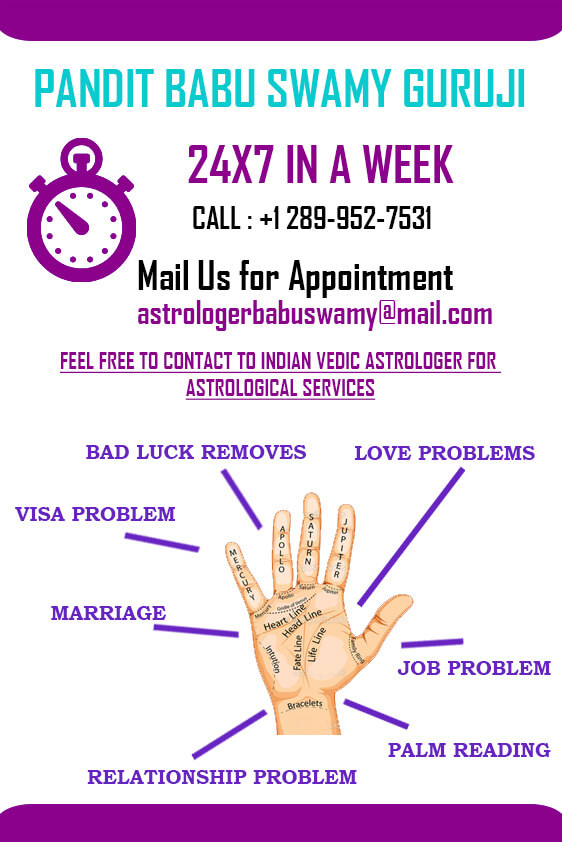 Babu Swamy is good and best astrologer in Canada recently I came across . He is very genuine and huge experience in astrology great character with simplicity doesn't charge in commercial way he person who fairly responds to peoples problem helps them to think positive and get ride of their persiflage and professional I have meet many astrologers, Babu Swamy ji stands very differently as a genuine person
